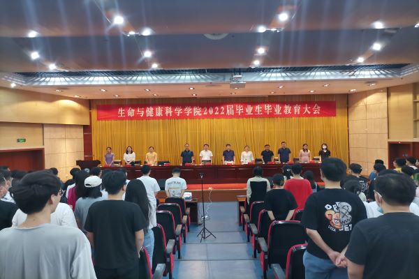 为进一步做好2022届毕业生毕业教育与管理工作,保证毕业生平安顺利离校,6月1日上午,生命与健康科学学院于会议中心二楼报告厅以线上线下相结合的方式召开2022届毕业生毕业教育大会。学院党委书记詹学文,党委副书记、副院长孙玉军,党委副书记、纪委书记彭丽萍,副院长钱立生,教师代表张强,生命科学卓越181班辅导员苗永美,党政办公室主任王传林,正科级辅导员兼正科级组织员邓艳萍,团委副书记姜毅,专职辅导员孙玉楼、张迪,全体2022届毕业生参加会议。会议由彭丽萍主持。