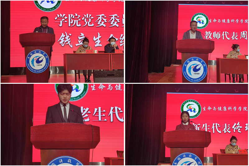 学院党委副书记、纪委书记彭丽萍就新生入学教育相关工作进行了安排和部署。学院党委委员、副院长钱立生从授予学位、主修课程以及就业方向三个方面对学院各个专业进行详细介绍。教师代表博士周成教授向同学们表达了殷切希望,并嘱托新生们要不忘初心,学会欣赏自己、欣赏他人,严于律己、明辨是非。老生代表生物制药专业秦志强同学,新生代表中药学专业佟瑞颐同学分别代表老生和新生交流发言。(特约通讯员:王传林 摄影:王雨倩 魏凤程 审核:彭丽萍)