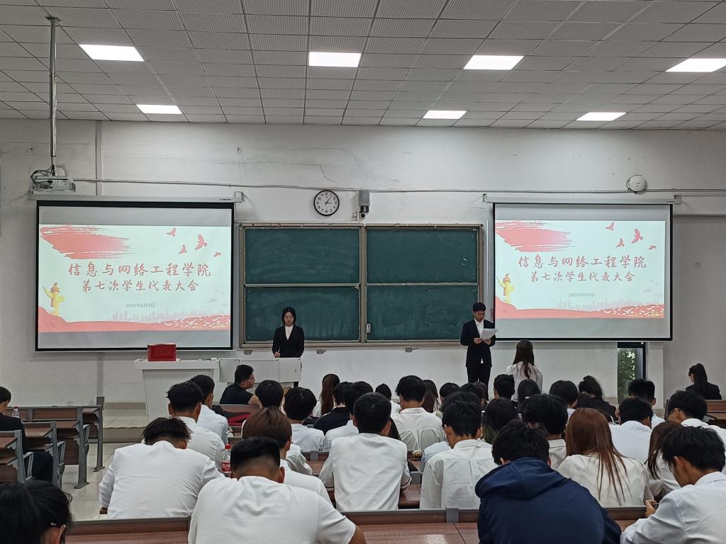 6月4日下午,信息与网络工程学院于致知楼C111召开学院第七次学生代表大会。学院学生会指导老师崔北坤出席会议,学院全体学生代表参加会议,本次会议由数据科学与大数据技术223班楚陈惠和网络工程222班吴宇康主持。