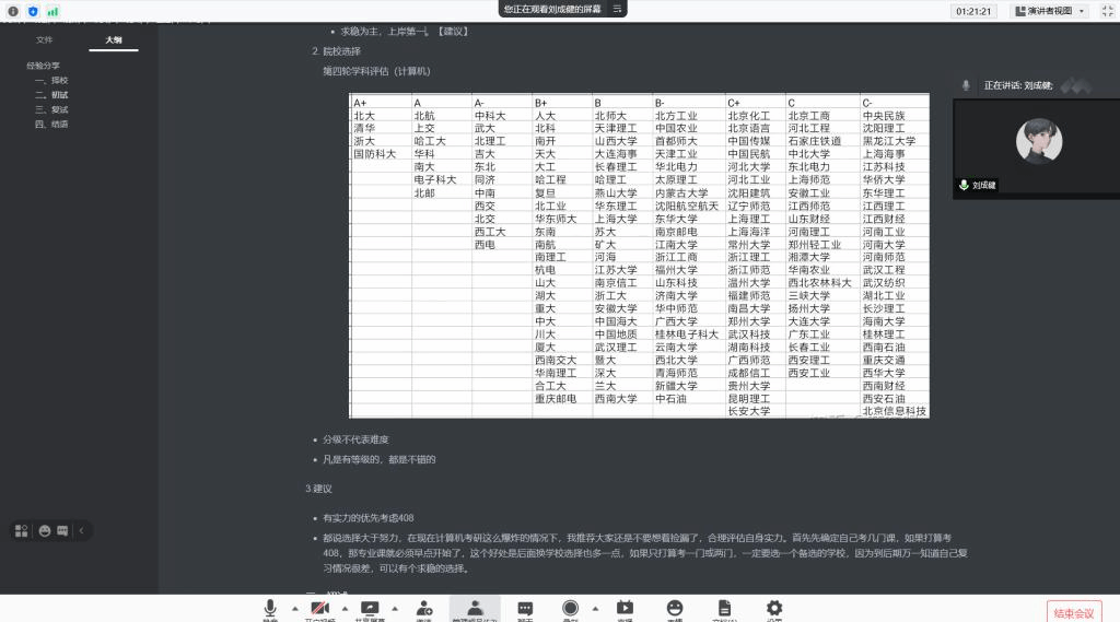 应邀参加经验交流会的六位同学分别以优异的成绩考取了中国地质大学、杭州电子科技大学、南京工业大学、上海海事大学、阜阳师范大学、安徽建筑大学。交流会上,他们结合自身的考研经历,先后围绕前期选专业、初试备考、复试、择校、调剂、专硕和学硕的区等话题向大家做了详细的介绍,并就如何高效的制定学习计划、如何平衡专业课与考研课程给出了各自的意见。六位同学用平和幽默的语言讲述了自己的考研之路,并希望学弟学妹们在考研准备过程中端正态度,持之以恒,合理的分配学习时间和作息时间。