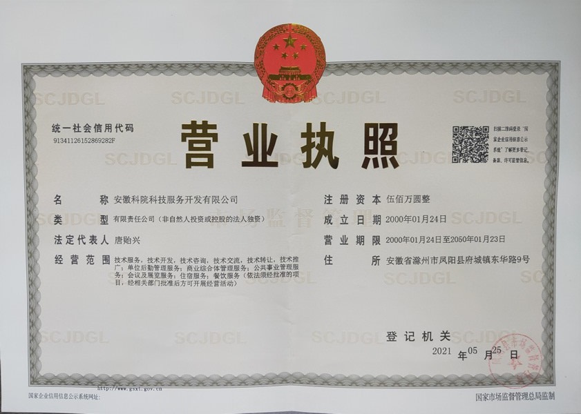 在校党委和行政的领导下,在国有资产管理处、财务处、后勤保障部等部门的支持配合下,经过资产经营管理部全体同志近半年的不懈努力,校属企业BB手机官方网站_BB(中国)经济开发总公司顺利改制成功,于2021年5月25日更名为安徽科院科技服务开发有限公司,并在安徽省市场监督管理系统完成变更注册工作。