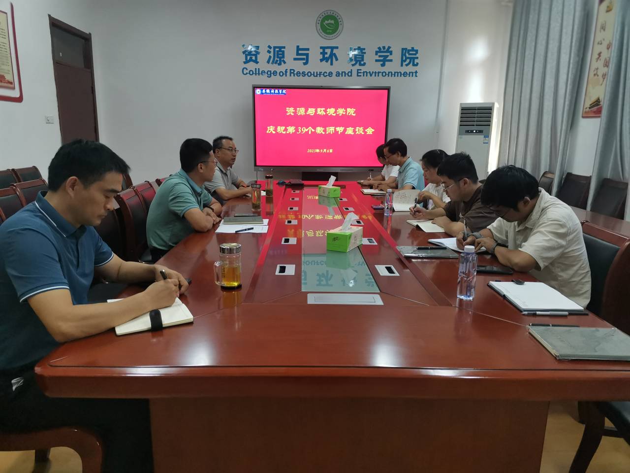 9月6日下午,资源与环境学院在学院会议室召开庆祝第39个教师节座谈会,党委副书记、院长李孝良、副院长邹海明,工会主席、近三年新入职教师参加了座谈会,党委副书记沈树周主持座谈会。