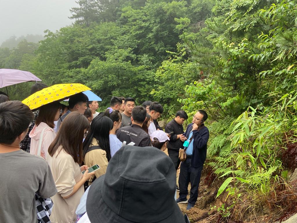 在为期四天的野外实习中,同学们实地鉴定了大别山花岗变质岩、钾长片麻岩等岩石特征,观察了沟谷流水地貌特征及片状流水形成的坡积物特征。结合不同海拔山区气候、植被条件的差异,比较了黄棕壤、山地棕壤和山地草甸土等自然土壤剖面、成土过程和成土环境特征,进一步掌握了山地土壤垂直分布特征,有效促进了学生对地质地貌学、土壤地理学、土壤学等课程知识的融会贯通。实习期间,同学们还参观了鹞落坪国家自然保护区动植物标本馆和红二十八军军政遗址,在认识保护区丰富自然资源的同时,深刻缅怀革命先烈丰功伟绩,传承大别山革命精神。(特约通讯员:吴红宝 摄影:刘健健 审核:沈树周)