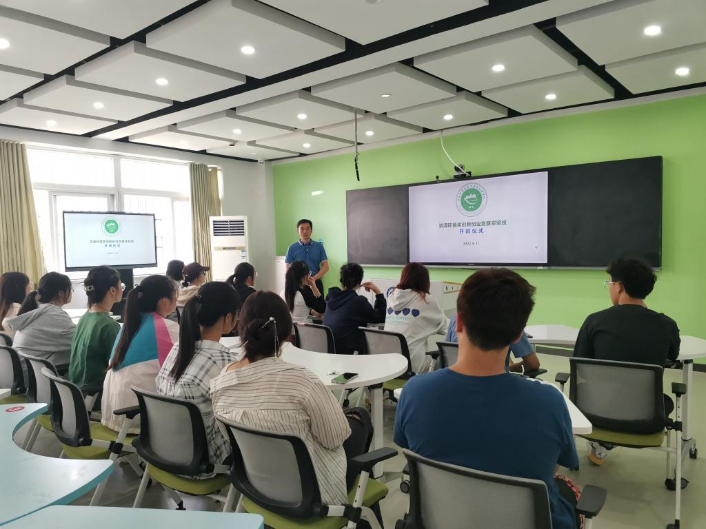 9月21日下午,资源与环境学院第一届资源环境类创新创业竞赛实验班开班仪式在求知楼B305举行。副院长邹海明、竞赛实验班导师代表(校督导考核办公室教学督导科副科长)马万征、竞赛实验班班主任刘金映和竞赛实验班全体同学参加了开班仪式。