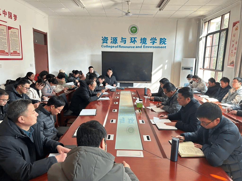 2月20日下午,资源与环境学院在学院会议室召开期初全体教职工会议,布置新学期重点工作。学院党委书记、院长李孝良,党委副书记沈树周,副院长邹海明、李飞跃出席会议,全体教职工参加会议。会议由李孝良主持。