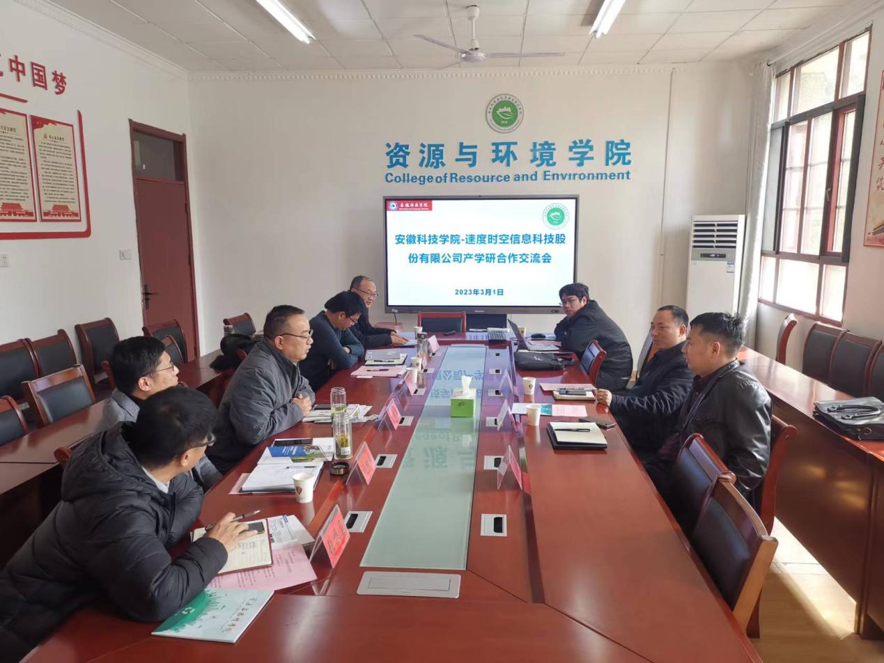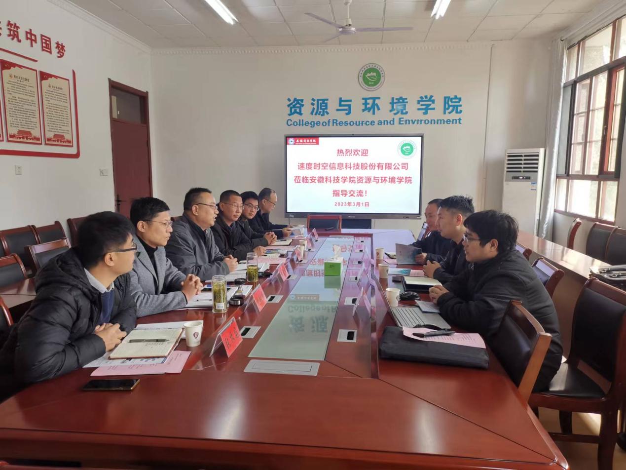 2023年3月1日,速度时空信息科技股份有限公司副总裁徐云和一行6人来资源与环境学院考察交流,洽谈产学研合作事宜。资源与环境学院党委书记、院长李孝良、副书记沈树周、副院长李飞跃、农业资源与环境系主任赵建荣、地理信息科学系主任张振国出席会议,BB手机官方网站_BB(中国)科研处副处长李同杰受邀参加会议。