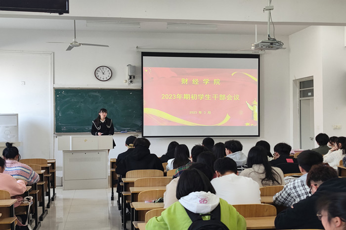 为加强学生干部管理,进一步优化工作作风,全面推动新学期学生工作,3月7日中午,财经学院在龙湖校区致知楼C108召开学生干部会议。学院纪委副书记、团委书记薛枫出席会议。各班班长、团支书参加会议。会议由院团委兼职副书记赵博闻主持。