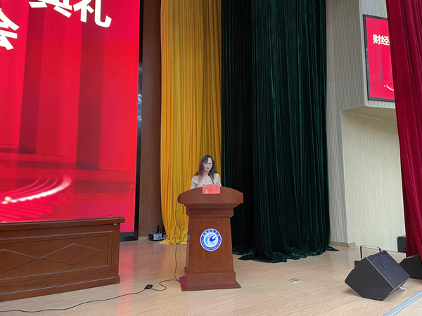 郝世绵致欢迎辞,她代表学院师生员工,向来自祖国各地的新同学表示最热烈的欢迎。随后,她介绍了学校七十多年的办学历史、浓厚的学习氛围,以及学院在教学、科研和师资队伍建设中所取得的成绩。最后,她对全体新生们提出三点希望:一是与学院全体教师一起,不断锤炼自己,在理智上更加求真,读书明理,在意志上更加向善,合作友善,在情感上更加爱美,精致完美;二是学会做选择,要把精力集中在重要的事情上,做到德、智、体、美、劳全面发展,努力提高综合素质;三是要以实现中华民族伟大复兴为己任,增强中国人的志气、骨气、底气,不负时代,不负韶华,不负党和人民的殷切期望,每一位安科财经人都成为美丽中国建设道路上颗颗闪亮的superstar!