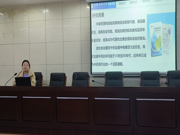 本期学术沙龙交流报告会,邀请2020级畜牧领域韩玉皎、徐可行、刘安怀、谢苗苗4名研究生作报告,4名同学分别围绕各自的实践研究内容进行学术交流。