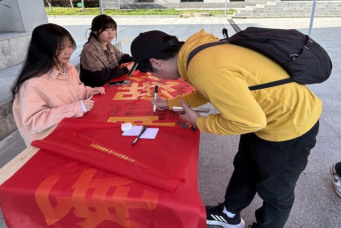 本次活动面向全校团员青年,以文字书写“雷锋精神”的形式开展,旨在让学生们深入了解雷锋精神的基本内涵。活动现场,团员青年们纷纷在便利贴上写出了自己心中的雷锋精神,并在横幅上签字。书写“向雷锋学习,做美德少年”、“复兴中华,共筑中华梦!”等激励人心的口号。通过庄严承诺,践行雷锋精神,同时在实践中不断丰富和发展。