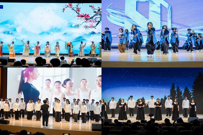 第二篇章《电燃梦想,青春飞扬》开场舞《MONSTERS》《Diamond引燃全场,为新生的大学生活璀璨开篇舞蹈《文明大作战》以幽默诙谐的表演方式展现了大学校园中的点滴趣事歌曲《罗生门》《夜空中最亮的星》舞蹈《We Rock》等节目诠释了青春的朝气与活力,展现了多元包容、活力四射的校园文化氛围第三篇章《铭记历史,吾辈自强》汉服走秀《霓裳风华》光影戏《与妻书》、歌曲《拆穿》和话剧《永不消逝的电波》等节目情感真挚的表演激励学生牢记历史,自立自强第四篇章《盛世中华,共创辉煌》以“筑梦”为核心教师朗诵《共筑中华复兴梦》、表演《强国有我》引导全体新生在崭新的起点接续奋斗,扬帆起航激励他们不忘初心,砥砺前行为实现中华民族伟大复兴的中国梦而奋斗