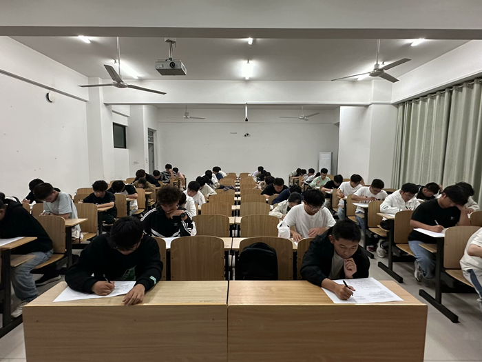 《学生手册》考试是对新生掌握校规校纪情况的检测与考查。考试内容涵盖学籍管理、日常安全、优奖惩助勤贷医等方面的相关规定和要求。考试过程中,监考人员严格执行监考职责,确保考场秩序井然,营造了良好的考风考纪氛围。学生高度专注,严格遵守考试规则,认真作答。