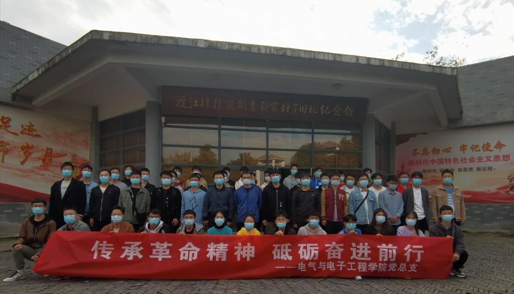 为将党校学员所学到的理论知识运用到实践当中去,加深对党的指导思想的认识,11月4日下午,电气与电子工程学院党总支开展第五十三期入党积极分子主题实践活动,本次主题实践活动的地点为省、市爱国主义教育、革命传统教育和国防教育基地渡江战役总前委孙家圩子旧址,辅导员张深、洪乃羽及电气学院第五十三期全体入党积极分子参加。