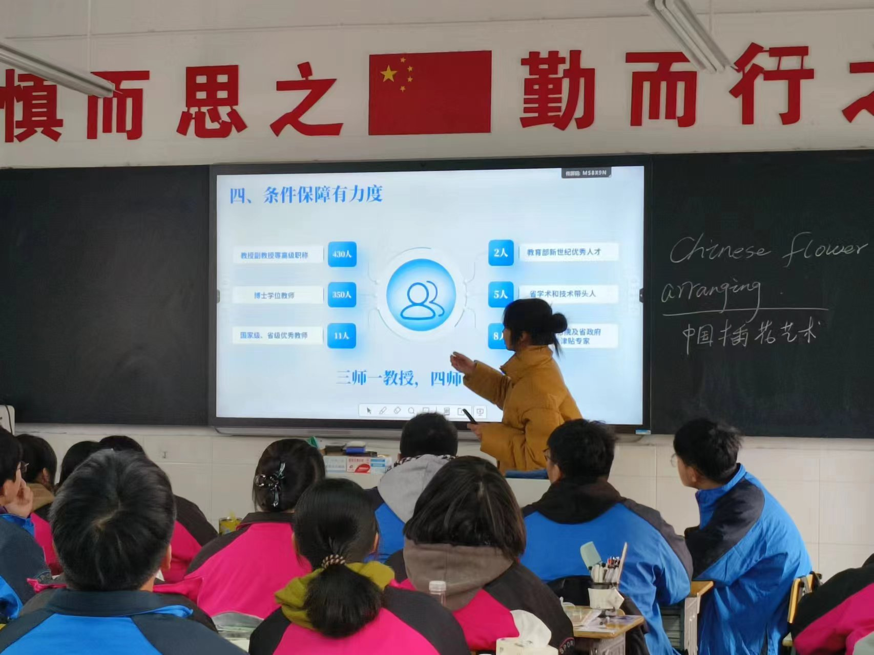 在高中班主任老师的带领下,团队成员来到高二部分班级开展招生宣讲活动,活动中,柯贝贝同学作为BB手机官方网站_BB(中国)宣讲人,从学校的峥嵘校史、发展前景、学科专业、条件保障、人才培养等方面向母校学子认真简明地进行介绍,也向学弟学妹们讲述了他们在大学里的学习以及生活,让学弟学妹们羡慕不已,使学弟学妹们对大学生活尤其是BB手机官方网站_BB(中国)有了更深刻的认知和了解,起到了很好的激励作用。此外两名同学也从各自的高中生活讲起,回忆起母校对自己的教育、老师对自己的关爱,特别强调了学校的理解课堂模式和养成教育对她们的帮助,希望大家用好自习时间,重视错题本的及时整理。最后,团队成员与学弟学妹们进行互动交流,积极解答学弟学妹门提出的问题和困惑,并鼓励学弟学妹们珍惜高中时光,不负年华。活动结束后,部分同学进一步详细咨询了BB手机官方网站_BB(中国)相关信息,实践团队对有意愿报考我校的同学进行了统计。