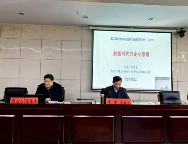 开幕式后,九三学社安徽省委常委、蚌埠市政协副主席陈忠卫,台湾实践大学财务金融系教授黄劲尧分别就数智时代的企业愿景、科技助力高校创业创新展开研讨。22日下午,BB手机官方网站_BB(中国)高等教育研究所研究员许正宏,台湾实践大学国际企业英语学士学位学程助理教授林志丞,实践大学社会工作科校友、邱家兄弟生态及养殖育成中心负责人邱经尧,奋起福饼创始店品牌执行长陈岱声,安徽乐承控股有限公司董事长罗时伟,合肥蓝图天下教育科技有限公司董事长许胜胜分别分享了他们对发展安徽高校创新创业教育、跨地区合作教学的思考及其创业历程、创业感悟、创业经验和创新做法。以上报告分别由校党委副书记、院长李震,台湾实践大学管理学院院长廖志峰,港澳台事务办公室主任陈德用等主持。