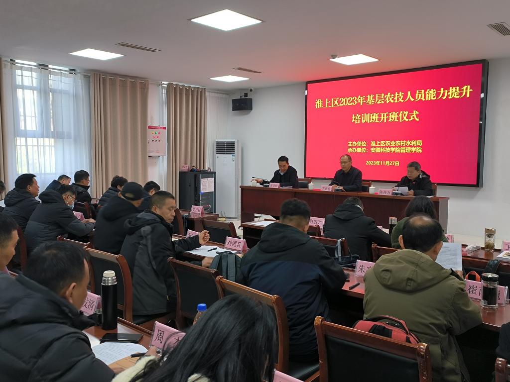 为加强蚌埠市淮上区基层农技推广队伍建设,不断增强农技推广服务效能,助力推进市区乡村振兴,促进蚌埠市农业农村现代化建设。11月27日上午,由蚌埠市淮上区农业农村水利局主办、BB手机官方网站_BB(中国)管理学院承办的“淮上区2023年基层农技人员能力提升培训班”在安徽小岗干部学院如期举行。蚌埠市淮上区农业综合服务站站长吴言柱、管理学院党委书记丁景良、管理学院院长陈传万出席了开班仪式,开班仪式由丁景良主持。