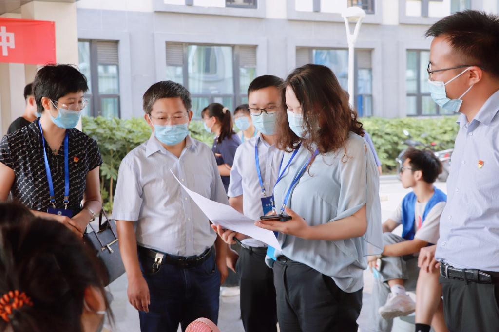 一些学生党员主动加入了迎新志愿者队伍,得知这一消息后,陈传万等院领导感到非常欣慰,来到南门党员服务点,肯定了学生党员积极发挥先锋模范作用,勉励他们再接再厉,把党史学习教育细化到新生服务的各个环节,把正能量传递给每一位新生。