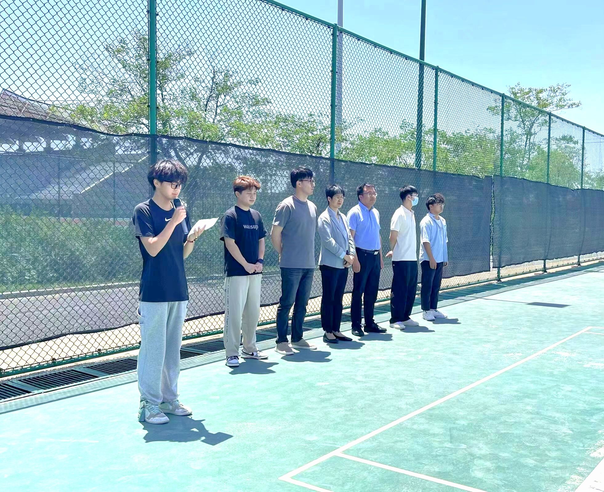 团委副书记江旭聪致辞,他表示,生命在于运动,体育改变生活。开展此次比赛是践行“绿色、健康、低碳、高雅”生活方式和发扬“更高、更快、更强、更团结”体育精神的生动体现,更是响应落实习近平总书记关于推动全民健身和全民健康深度融合重要讲话的具体行动。希望同学们以球会友,收获友谊、收获美好心情、收获健康体魄。