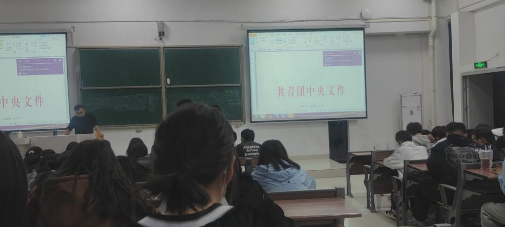 李永鹏采用多媒体视频和文件要求解读相结合的方式,带领大家仔细学习了加入中国共产党的基本要求和流程,介绍了中国共产党的基本知识、指导思想、性质和宗旨,讲述了党员故事。并向新生们讲解了入党条件、加入党组织的基本流程、入党申请书的格式及要求。