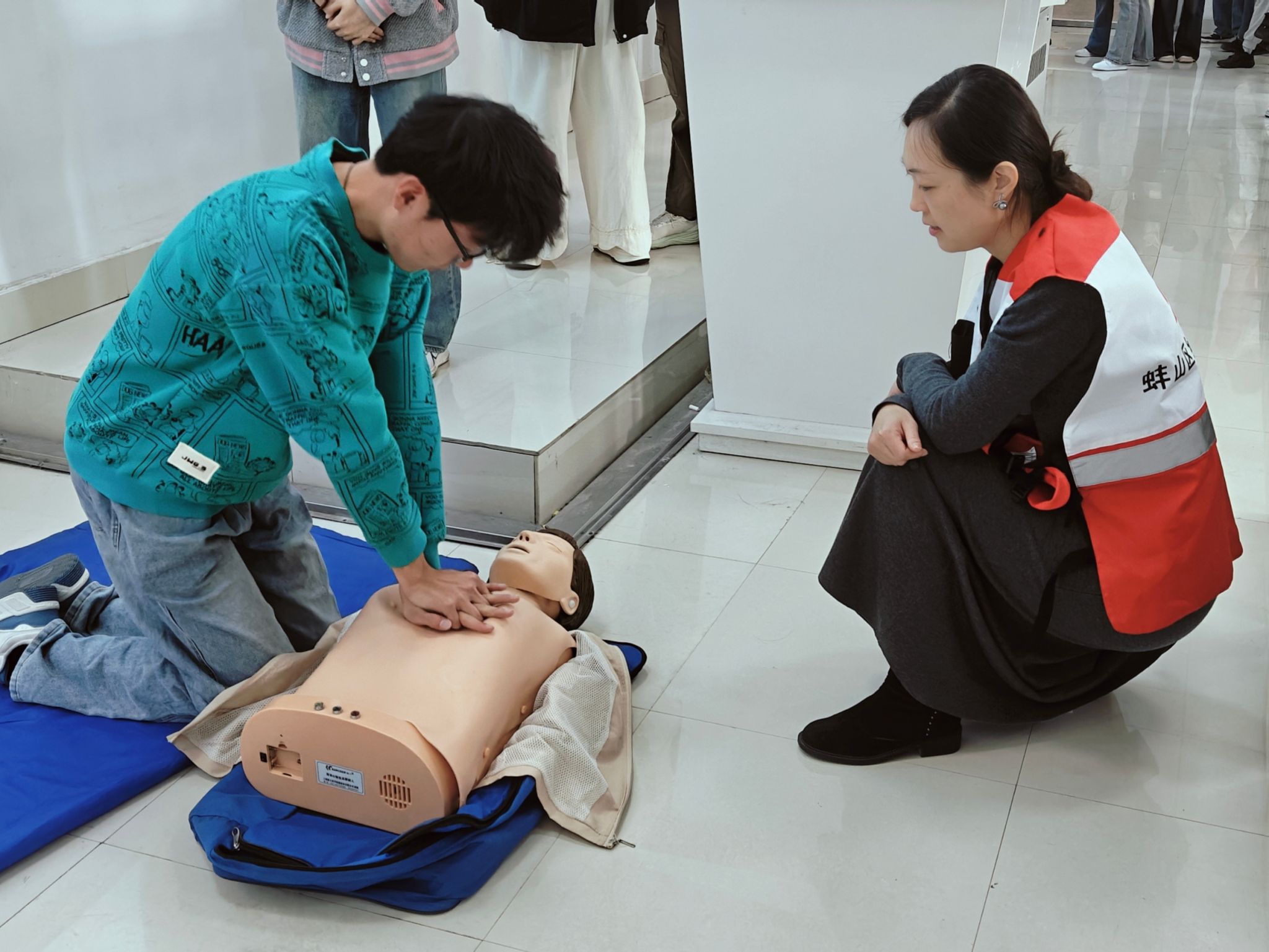培训活动以“人人学急救 急救为人人”为主题,采用理论知识与实践操作相结合的方式。培训内容涵盖了心肺复苏、自动体外除颤器(AED)的使用以及气道异物梗阻处理等关键的救护技能。在培训过程中,学生们展现出了浓厚的学习兴趣和积极性。在主讲人的悉心指导下,学生们逐一在人体模型上进行心肺复苏实操练习。从判断现场环境安全、请求拨打120救援电话,到确定按压位置、掌握按压力度、及时进行人工呼吸抢救,学生们认真对待着每一个步骤。