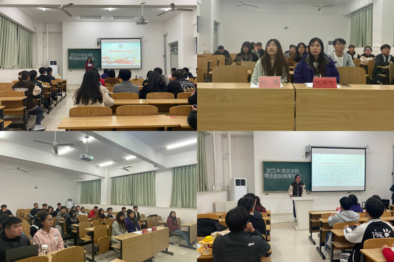 为更好的推进学生组织的工作运行,11月25日晚,2021年建筑学院学生组织述职评议工作会议在致知楼a109顺利展开。建筑学院专职辅导员阮怀思、校学生会主席团成员刘伟担任此次评议的评委,参会人员为建筑学院学生组织执行主席与相关负责人。
