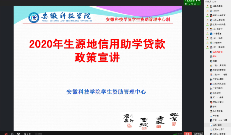 宣讲会开始,李新老师分别对国家开发银行和安徽省农村合作金融机构的助学贷款如何申请、发放、还款三个环节进行详细说明。并重点讲解了贷款同学做好申请贷款的材料、系统注册操作步骤和注意事项。举例介绍了生源地信用助学贷款申请条件和共同借款人的要求。特别提醒贷款同学必须正规渠道办理贷款,防止诈骗。最后,对同学们提出的疑问做出进行解答。