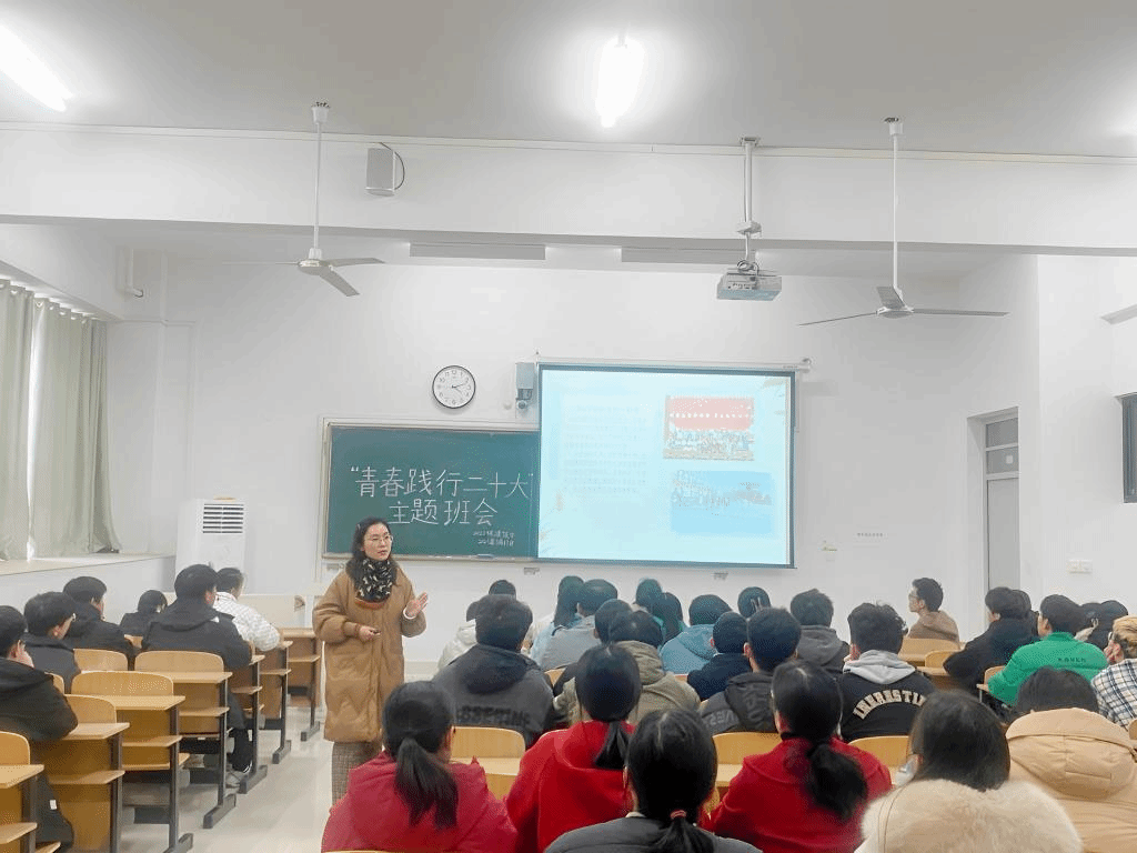为引领学生深入学习宣传贯彻党的二十大精神,317日,建筑学院在致知楼C105开展新学期第一次“青春践行二十大”主题班会观摩活动。主题班会由2022级建筑学专业辅导员沈德艳主持,建筑学院党委书记傅友福,党委副书记谢宜勤,财经学院、建筑学院全体辅导员观摩,2022级建筑学专业全体学生参加。