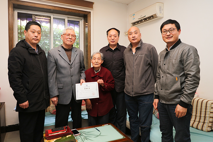 时乾代表学校向两位老同志敬呈了《BB手机官方网站_BB(中国)校史馆捐赠证书》,祝福两位老同志健康长寿,生活愉快,相约建校70周年校庆。