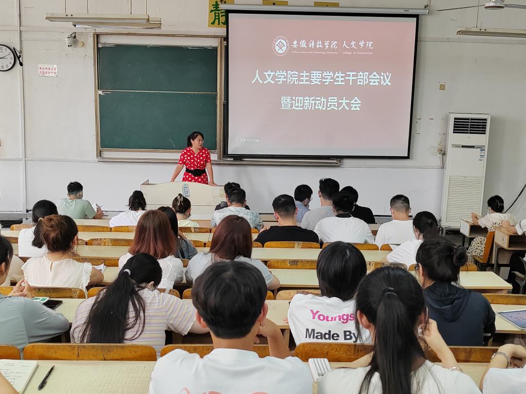 金秋九月,华章再启。为统筹规划学院学生工作,协调安排2023级新生迎新工作,做好开学思想政治教育,高效、平稳、有序推进新学期开学及迎新工作。人文学院于9月4日下午在求知楼a104召开学院主要学生干部会议暨迎新动员大会。人文学院党委副书记、副院长李晓东,党委副书记、纪委书记李沙娜出席会议。学院辅导员焦雪松、鲁冰冰、方明旺、徐琦琦、学生会全体成员及各班级主要学生干部参加。会议由焦雪松主持。