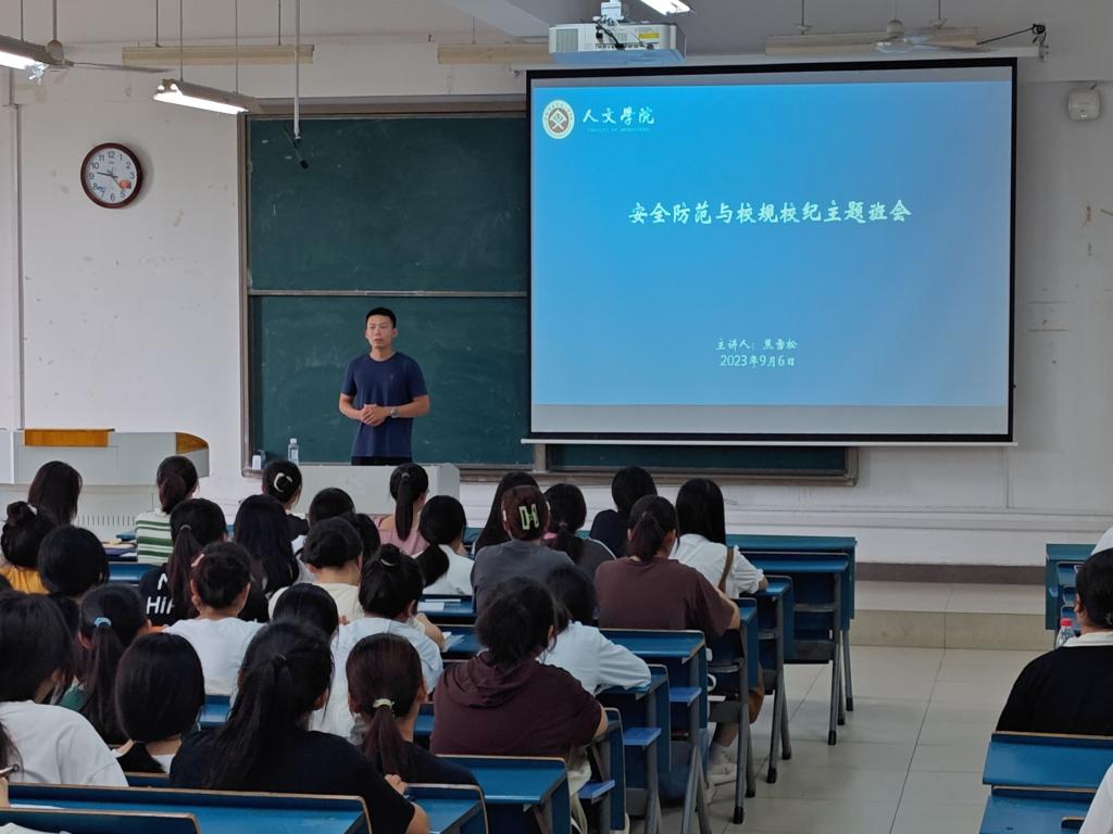 规矩用以成方圆,遵规守纪促成长。遵规守纪教育系列活动的开展,让2023级新生学习和了解学校相关制度规定,有利于增强遵规守纪意识,提高自我管理能力,争做遵规守纪的人文学子。(特约通讯员:焦雪松 摄影:王家喜 审核:李沙娜 张严政)