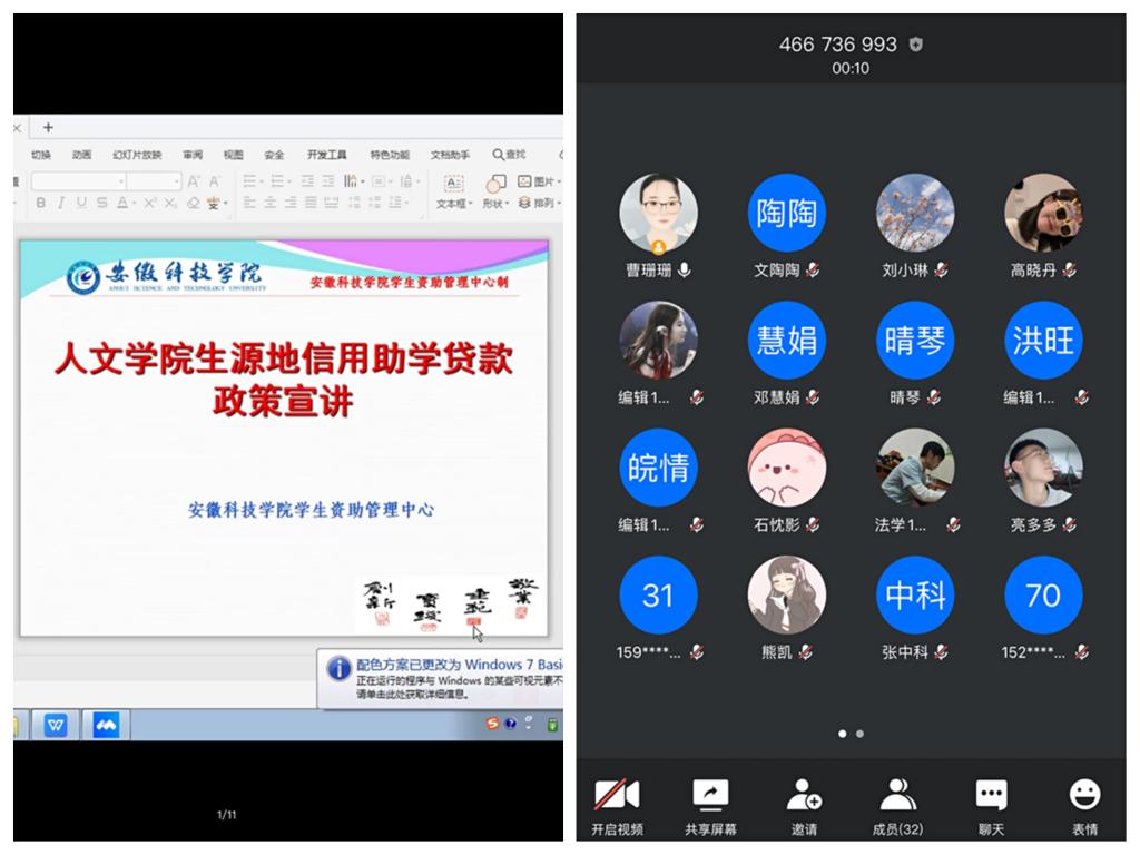 为进一步做好学生资助政策宣传工作,5月27日下午,人文学院通过腾讯会议开展2020年生源地信用助学贷款政策线上宣讲会,活动由辅导员曹珊珊主持,16、17、18级资助委员和部分贷款学生聆听了宣讲。