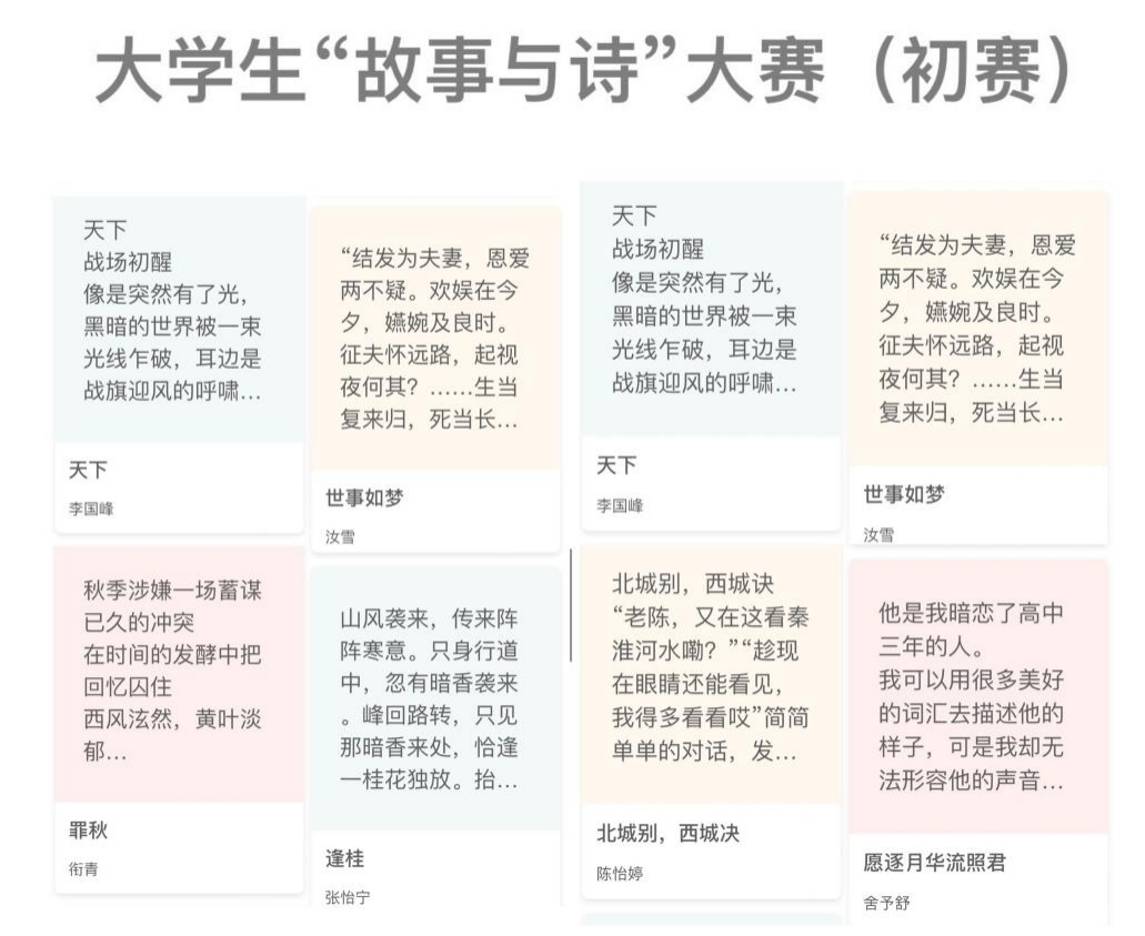 为营造我校热爱文学的良好氛围,丰富学生课外生活,促进学生全面发展。4月30日-5月30日,人文学院团委联合大学生爱好者协会、卓越话剧社、潜草诗社举办“故事与诗”比赛,掀起安科学子创作风潮。