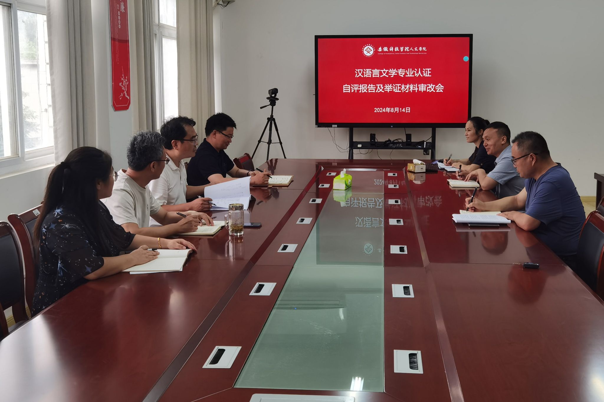 8月14日下午,人文学院在学院会议室召开汉语言文学专业认证自评报告及举证材料审改会。学院党政领导及专业认证各小组负责人参加会议。会议由人文学院副院长牛永辉主持。