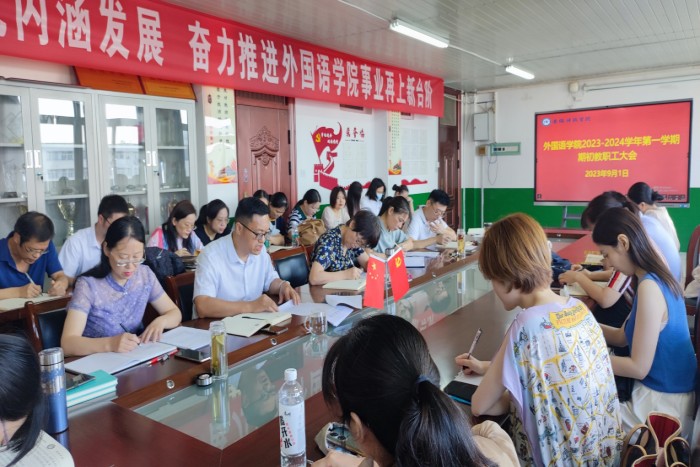 9月1日上午,外国语学院在学院会议室召开全体教职工会议,对2023上半年和暑期工作进行全面总结,对新学期各项工作进行部署。学院党政领导及全体教职工参加了会议,会议由学院院长刘萍主持。