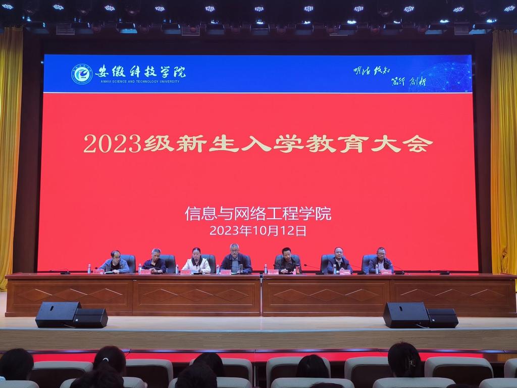 10月12日中午,信息与网络工程学院在东辅楼二楼学术报告厅隆重召开2023级新生入学教育大会。学院党政领导、各系室主任、教师代表宋晨光、全体辅导员及2023级全体新生参加会议。会议由学院党委副书记韦乃学主持。
