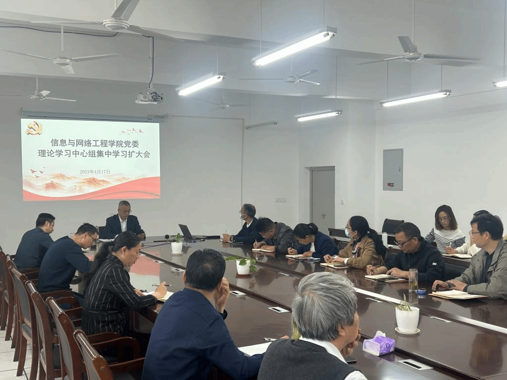 4月17日上午,信息与网络工程学院党委理论学习中心组召开专题学习扩大会议,集中传达了中央学习贯彻习近平新时代中国特色社会主义思想主题教育工作会议精神和安徽省学习贯彻习近平新时代中国特色社会主义思想主题教育动员大会精神,中心组全体成员、全体教工党员参加了学习会。会议由学院党委书记王振其主持。