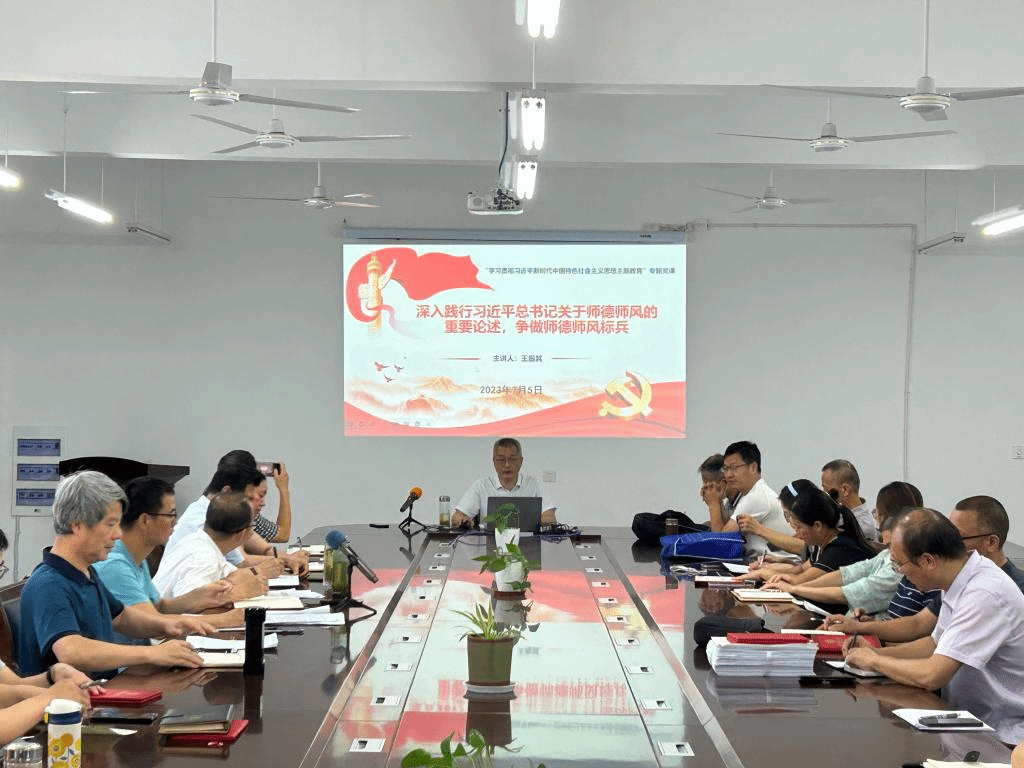 为深入学习贯彻习近平总书记关于教育的重要论述,坚持把师德师风作为评价教师队伍素质的第一标准,努力打造一支“四有”好老师队伍,根据学院主题教育工作安排,7月5日下午,信息与网络工程学院党委书记王振其在尚行楼B418会议室以“深入践行习近平总书记关于师德师风的重要论述,争做师德师风标兵”为主题为全体教工党员上了一次主题教育专题党课。