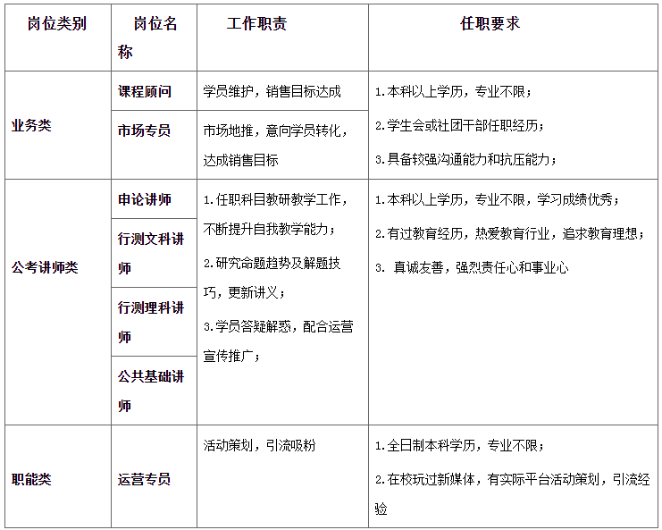 1.薪资:业务岗综合年薪12万起,上不封顶;教师岗综合年薪15-20万起、职能岗综合年薪10万起,每年涨薪1-2次;