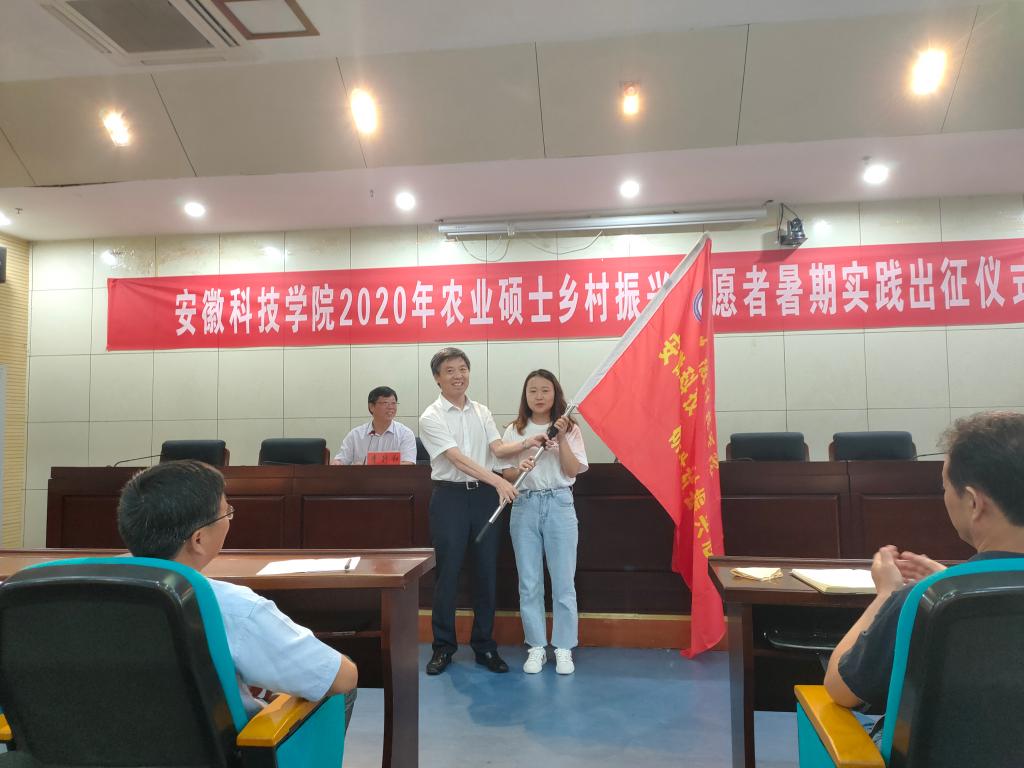 7月26日上午,我校“弘扬安科精神 助力乡村振兴”2020年农业硕士乡村振兴志愿者暑期实践出征仪式在图书馆一楼报告厅举行。校党委书记蒋德勤,党委副书记、校长李震,党委委员、副校长李升和,以及各研究生培养学院负责人、带队教师和全体研究生志愿者参加了出征仪式。出征仪式由李升和主持。